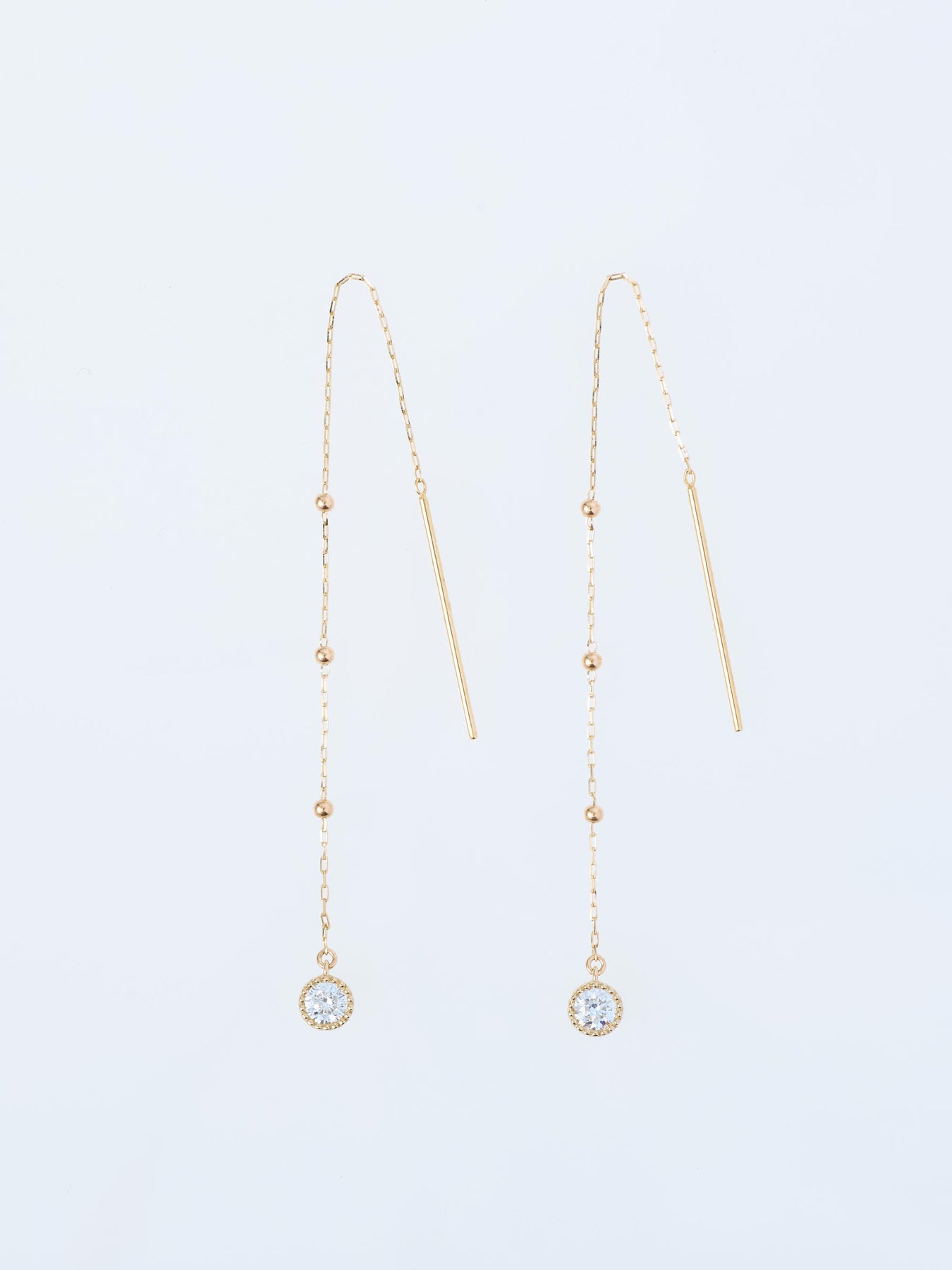 植物の蔦をイメージし、エナジーが連なっている様をボールチェーンで表現したチェーンピアス。ダイヤモンドの周りはミル打ちを施し、ENEYらしいエッジをプラスしました。アメリカンピアスなのでお好みの長さでお楽しみいただけます。